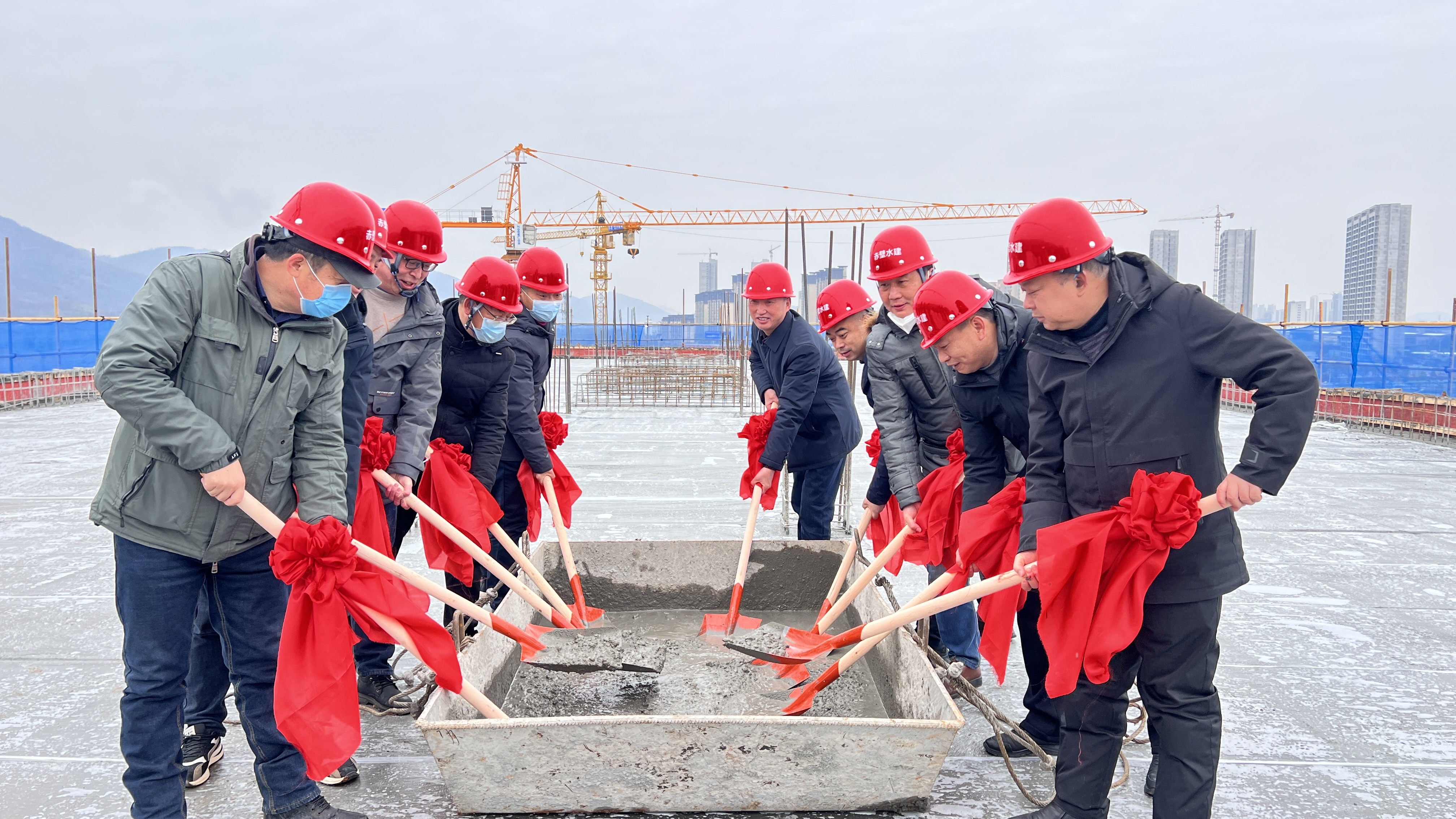 1月17日上午,隨著最后一方混凝土澆筑完成,赤壁職業(yè)教育(集團)新校區(qū)6號樓主體結(jié)構(gòu)順利封頂。赤壁職業(yè)教育(集團)學(xué)校與水建集團部分班子成員、中層干部及部分項目管理人員等共同見證了這一興奮時刻。